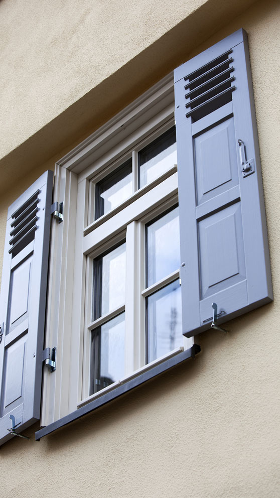 Der bekannteste Sonnenschutz am Fenster ist immer noch der klassische Fensterladen. Ob rustikal oder modern, bei Neubauten oder Denkmalrenovierungen, der Fensterladen ist ein vielseitiges Bauelement, das jede Fassade aufwertet. Farblich und in verschiedenen Formen fügen sich Fensterladen harmonisch ins Gesamtbild des Hauses ein und bieten interessante Möglichkeiten bei der individuellen Gestaltung.