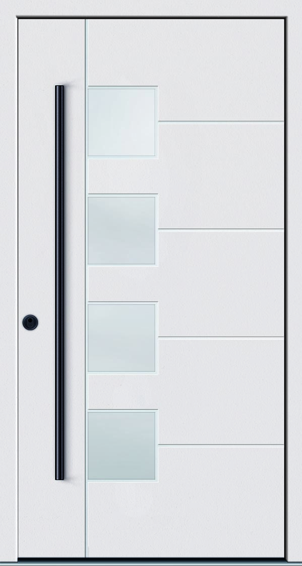 Die KNEER-SÜDFENSTER Haustüren mit Aluminiumschale erhalten Sie in vielen verschiedenen Optiken, zum Beispiel auch in einer modernen flächenbündigen Variante oder mit völlig verdeckt liegenden Beschlägen.